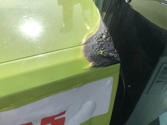 Bird nest built over exhaust caused COSMETIC damage only to hood and cover panel. Call for details.